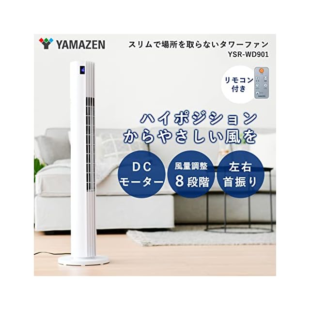商品名:[山善] 扇風機 タワーファン リビング 羽なし スリム 静音 DCモーター リモコン付 ホワイト YSR-WD901(W)
