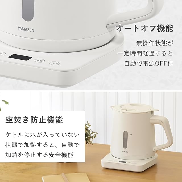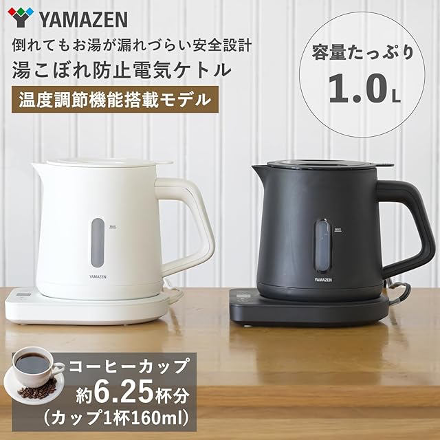 [山善] 電気ケトル 電気ポット 1.0L 1200W 一人暮らし 二人暮らし 湯こぼれ防止 温度調節 保温 空焚き防止 オートオフ機能 お手入れ簡単 ホワイト YKU-SC1210J(W) | emishop315