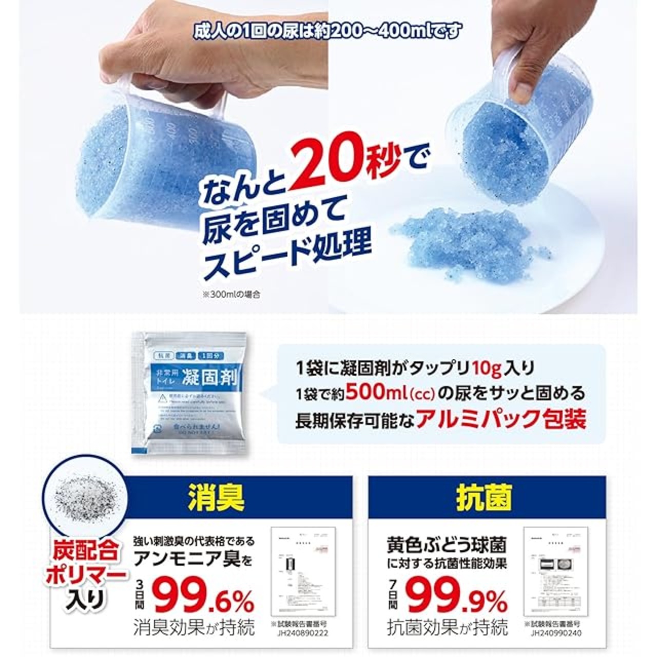 【しっかり消臭】たっぷり10gの凝固剤で素早く固めてニオイをおさえます。凝固剤はアルミパック包装で長期保存が可能です。