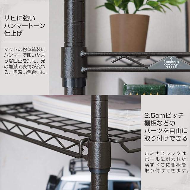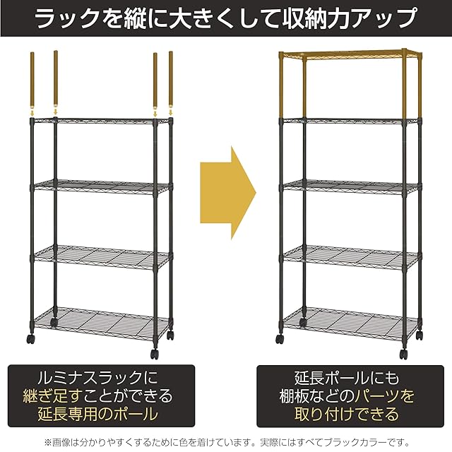 ドウシシャ ルミナス ノワール ラック スチールラックパーツ 高さ延長ポール 支柱 2本セット ポール径25mm ジョイント付き 長さ46.5cm NOADDP2545 黒 ブラック 追加パーツ diy 後付け 業務用 頑丈 防サビ加工 45cmモデル | emishop315