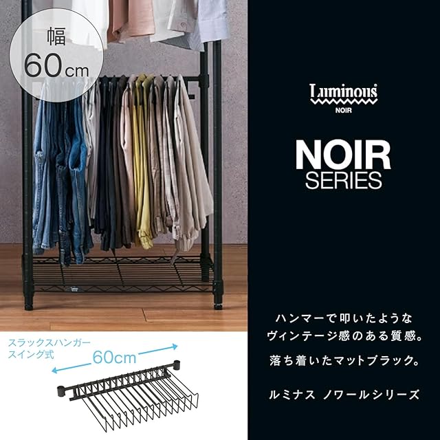 商品名:ドウシシャ ルミナス ノワール追加パーツ スラックスハンガー NO-SH60S 15本収納 スイング式 幅61cmラック用 ブラック ポール径25mm 拡張収納 ワードローブ DIY 後付け対応 ラック部品 収納強化 収納ラックパーツ ラック延長
