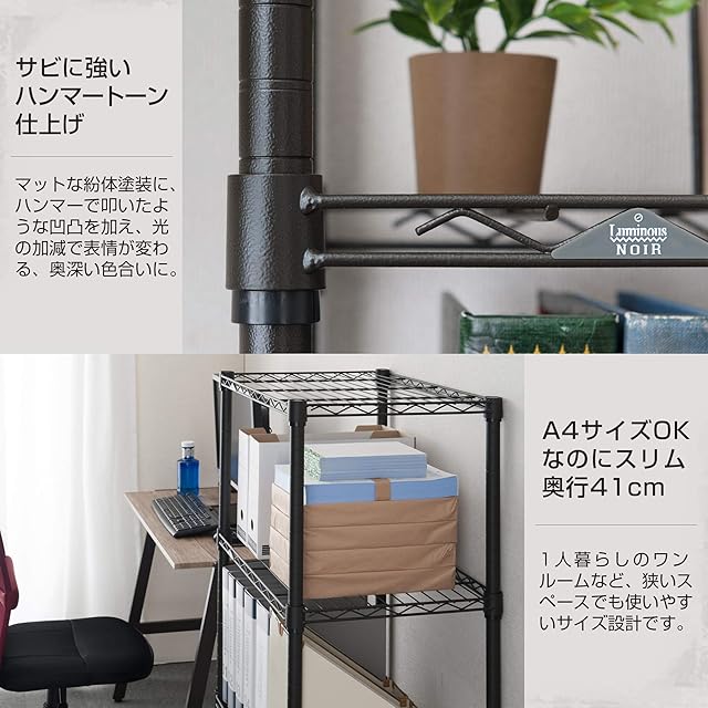 ドウシシャ ルミナス ノワール ラック スチールラック パーツ 追加スチール棚板 黒 ブラック ポール径25mm 幅61×奥行41cm NO6040-SS スリーブ無し シェルフ 天板 耐荷重80kg 業務用 頑丈 幅60 奥行40モデル シェルフ | emishop315