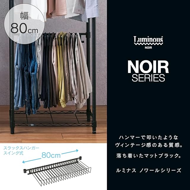 商品名:ドウシシャ ルミナス ノワール追加パーツ スラックスハンガー NO-SH80S 22本収納 スイング式 幅81cmラック用 ブラック ポール径25mm 拡張収納 ワードローブ DIY 後付け対応 ラック部品 収納強化 収納ラックパーツ ラック延長