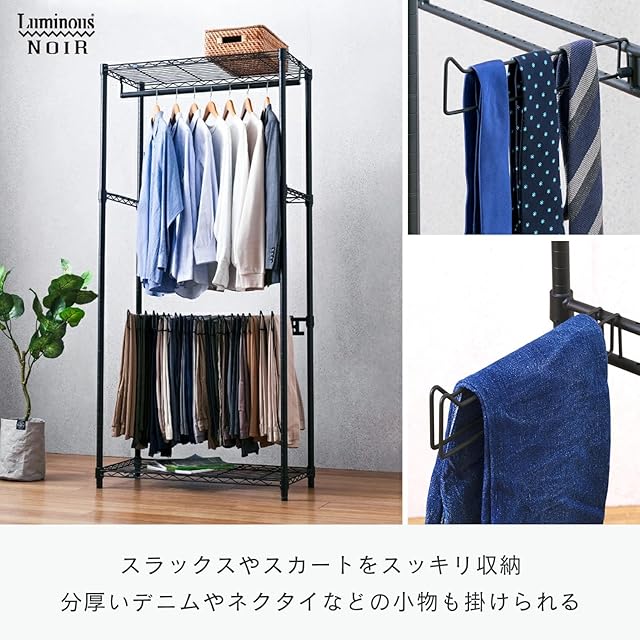 ドウシシャ ルミナス ノワール追加パーツ スラックスハンガー NO-SH80S 22本収納 スイング式 幅81cmラック用 ブラック ポール径25mm 拡張収納 ワードローブ DIY 後付け対応 ラック部品 収納強化 収納ラックパーツ ラック延長 | emishop315