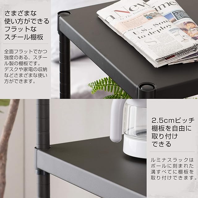 ドウシシャ ルミナス ノワール ラック スチールラック パーツ 棚板 スチールシェルフ ソリッドシェルフ 幅81×奥行41cm 耐荷重80kg ポール径25mm NO8040-SD サビと傷に強い特殊塗装 黒 ブラック おしゃれ 収納 奥行きスリム | emishop315