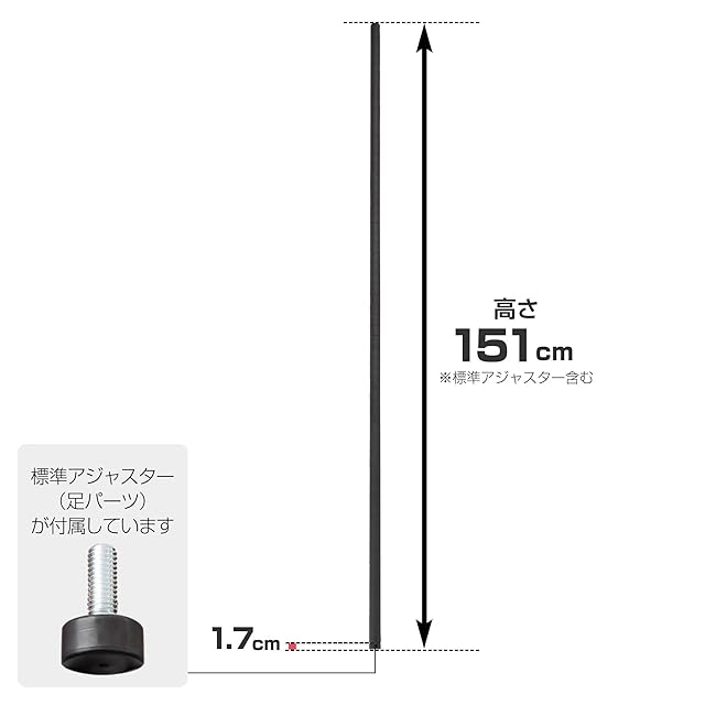 商品名:ドウシシャ ルミナス ノワール スチールラックパーツ 長さ152cm 基本ポール 2本セット ラック 支柱 ポール径25mm アジャスター付き NOP-150SL 可愛い おしゃれ 黒 ブラック diy 防サビ加工 頑丈 業務用 組立簡単 150cmモデル
