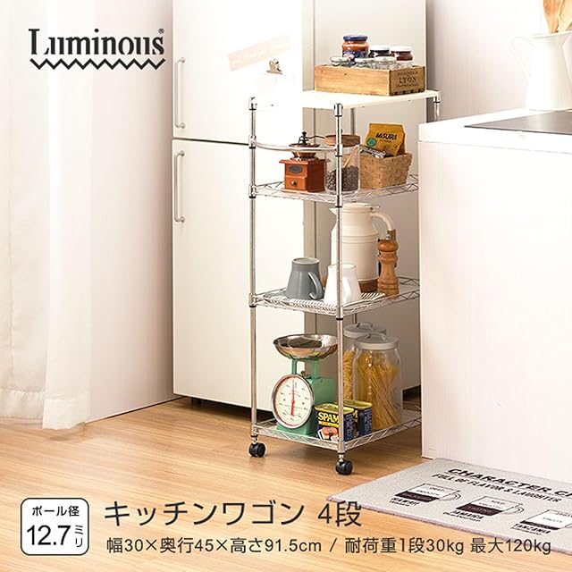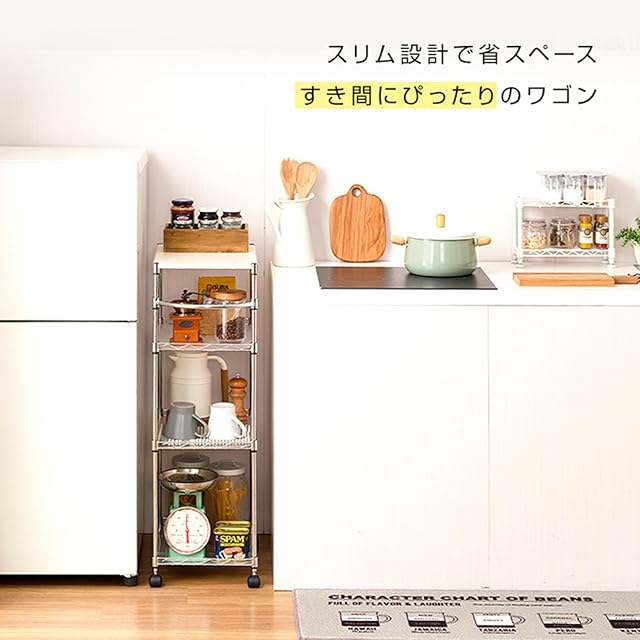 ドウシシャ ワゴン キッチンワゴン ランドリー収納 幅30cm 4段 スリム 隙間収納 耐荷重120kg 幅30×奥行45×高さ91.5cm EP453090-4 木製天板 作業台 白 ホワイト ハンドルとキャスター付きで移動らくらく 専用シート付き 可動棚 | emishop315
