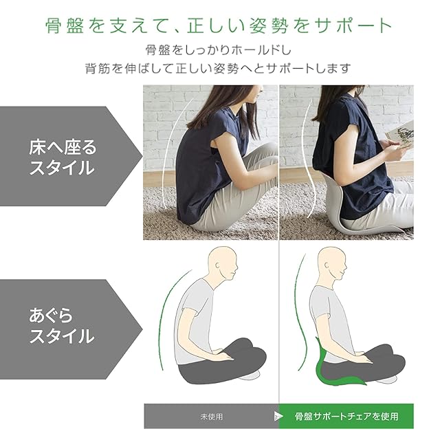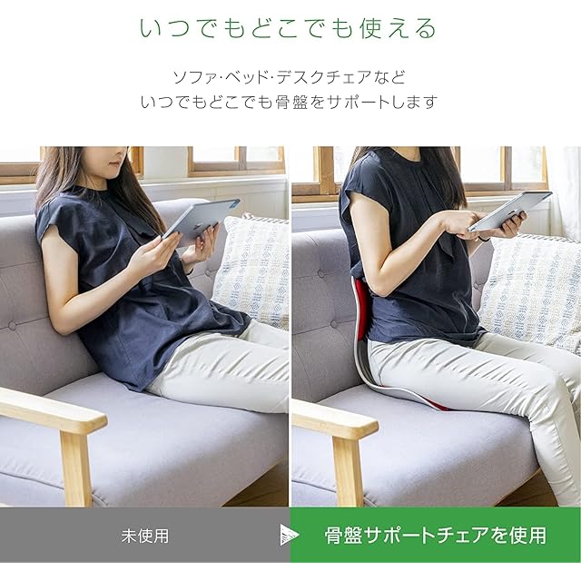 男女の骨盤の違いに合わせて開発された骨盤サポートチェア。骨盤を支えてしっかりホールド。背骨を正しい状態に保ち身体にかかる負担を軽減、背筋を伸ばして正しい姿勢へ導きます。女性用のRC1220は座面を大きめの曲線にし、やさしくぴったりフィットするよう設計しています。使用シーンを選ばず、ソファ・ベッド・デスクチェア・ダイニングチェア・カーペットの上などいつでもどこでもご使用いただけます。一日3時間以上座っている方にオススメです。猫背になりがちなあぐらも、骨盤サポートチェアを使ってあぐらをかけば背筋が伸びます。性別に関係なく、小柄な方もお使いいただけます。