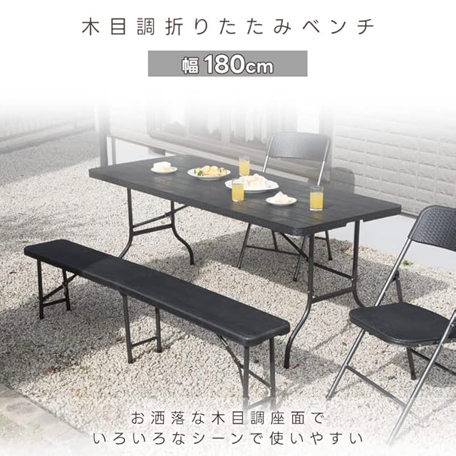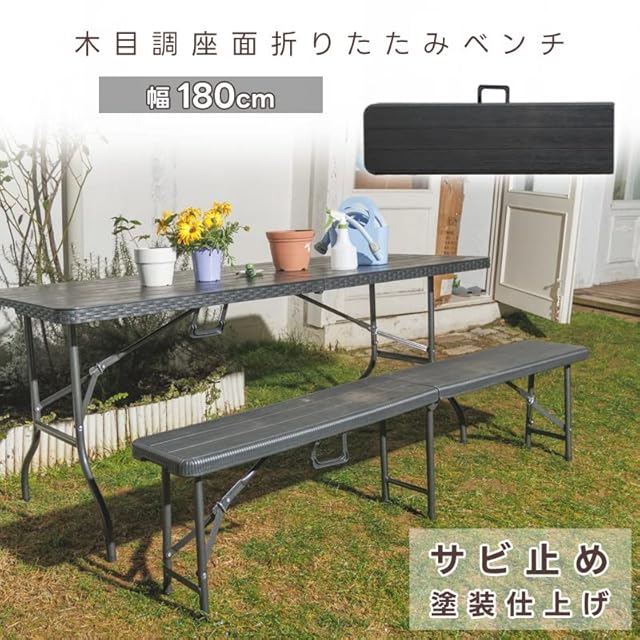 リビングアウト(Living Out) ウィッカー調折りたたみベンチ 幅181x奥行26x高さ41㎝ ガーデン テラス バルコニー アウトドア 屋外 庭 おしゃれ