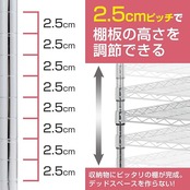 素材:シェルフ(棚)・ポール:スチール(クロームメッキ)、スリーブ:ABS樹脂