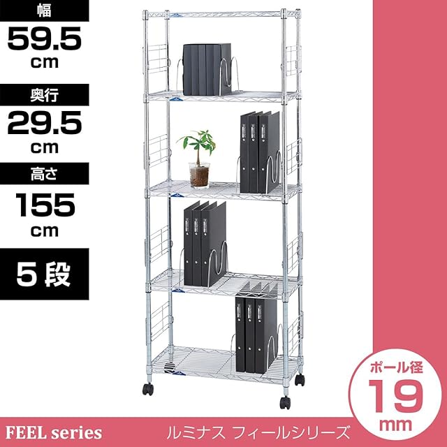 ドウシシャ ルミナス フィール 本棚 漫画収納 ブックシェルフ 収納棚 スチールラック 幅60 5段 大容量 組立簡単 落下防止 サポート柵付き 耐荷重80kg (棚板1枚) ポール径19mm 幅59.5×奥行29.5×高さ155cm MD6015-5B | emishop315