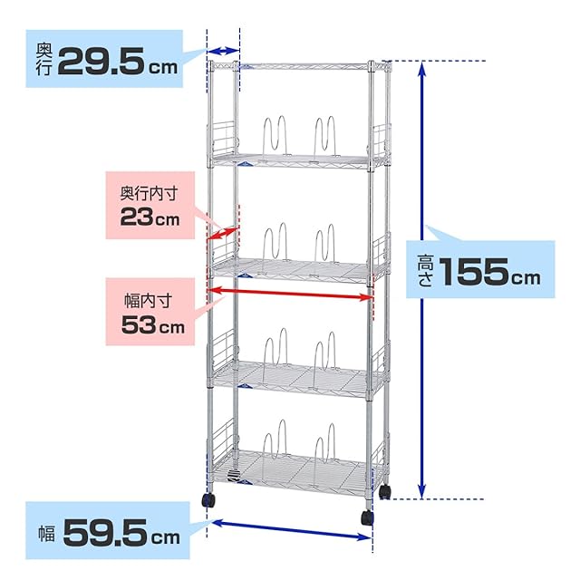 サイズ:(約)幅59.5×奥行29.5×高さ156.5cm高さはナイロンキャスター装着時の物です。(標準アジャスターの場合(約)-3.5cmとなります。)