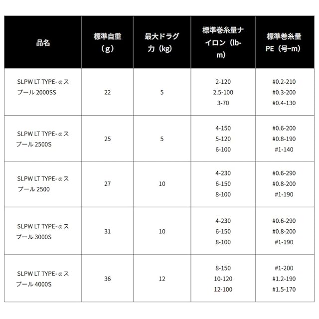 標準巻糸量 ナイロン(lb-m):4-230, 6-150, 8-100