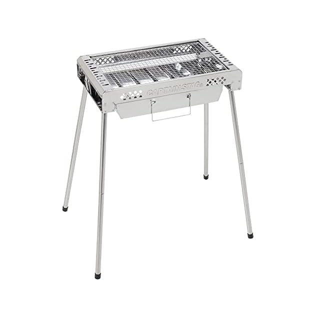 キャプテンスタッグ(CAPTAIN STAG) バーベキューコンロ グリル スリム スライドグリル 500 (3-4人用) ハイ・ロー高さ2段階 スライド式炭入れ ステンレス製 組立簡単 UG-83 シルバー 幅500×奥行290×高さ700・380mm | emishop315