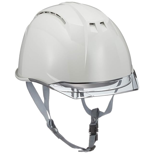商品名:DICプラスチック ヘルメット AA11EVO-CSW 通気孔・透明ひさし・保護シールド面・スチロールライナー付 ライトグレー/スモーク AA11-CSW-HA6E2-A11-GY-S