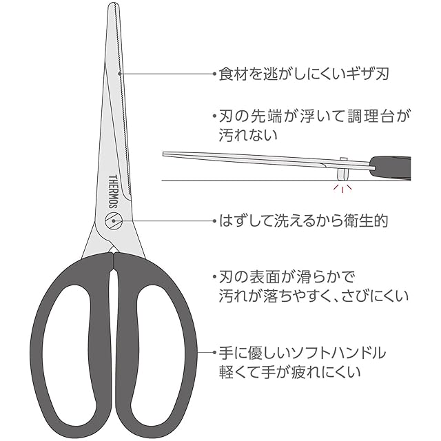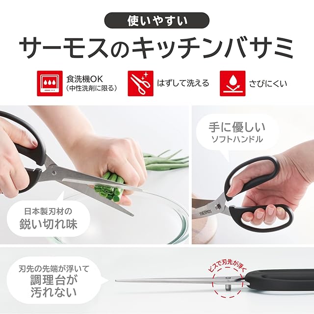 サーモス キッチンバサミ ストレート刃 ブラック 分解式 食洗機対応 料理ばさみ 日本製刃材の鋭い切れ味 刃先が浮いて調理台が汚れない 汚れが落ちやすくさびにくい KK-HS001 BK | emishop315