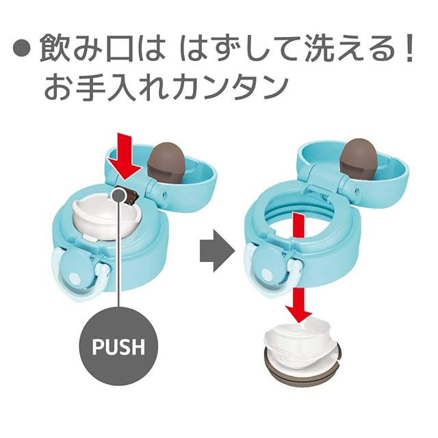 素材・材質:内びん/ステンレス鋼、胴部/ステンレス鋼(アクリル樹脂塗装)、フタカバー/ABS樹脂、フタ・せん本体/ポリプロピレン、飲み口/ポリプロピレン、フタパッキン/シリコーンゴム、せんパッキン/シリコーンゴム