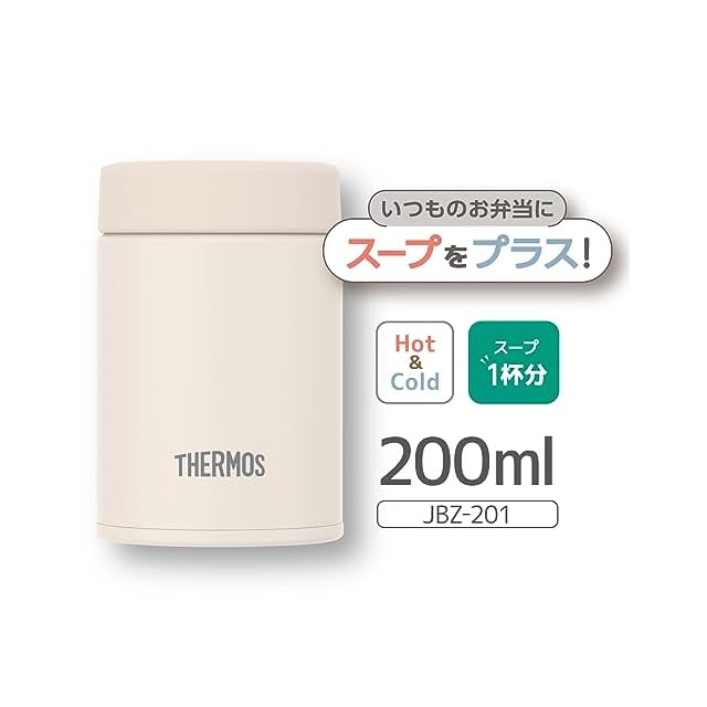 商品名:【小容量モデル】 サーモス 真空断熱スープジャー 200ml アイボリー コンパクトサイズ 保温保冷 お手入れ簡単 口当たりがやさしい丸口設計 JBZ-201 IV