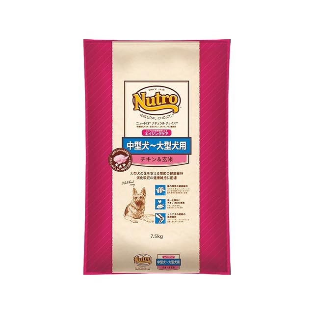 商品名:Nutro ナチュラルチョイス シニア犬用 中型犬~大型犬用 チキン&玄米 7.5kg ドライフード 総合栄養食 エイジングケア ドッグフード 犬 自然素材 香料・着色料 無添加 ニュートロ