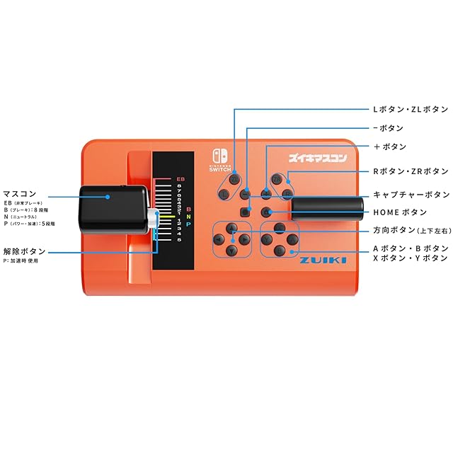 【任天堂ライセンス】:ズイキマスコンは任天堂ライセンスのコントローラーであり、Nintendo Switch用ソフト「電車でGO! ! はしろう山手線」、「鉄道にっぽん!RealPro 特急ロマンスカー!小田急電鉄編」、「鉄道にっぽん!Real Pro 特急走行!名古屋鉄道編」、「鉄道にっぽん!路線たびEX 清流運転 長良川鉄道編」、「鉄道にっぽん!路線たび 明知鉄道編」、steam用ソフト「JR東日本トレインシミュレータ」に対応できます。