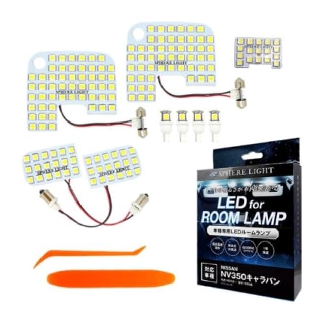 スフィアライト NV350 キャラバン GXグレード LED ルームランプ セット ホワイト E26系 アッパーグレード 専用設計 室内灯 取付 簡単 微点灯 点滅 対策 SPHERELIGHT SLRM-18 | emishop315