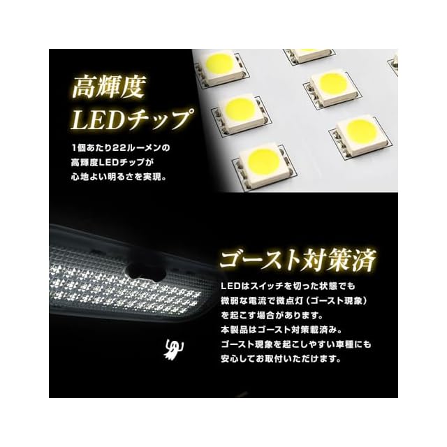 【ゴースト(微点灯)対策済】ルームランプをLED化した際、スイッチをOFFにしているのにフワフワとした点灯する現象(ゴースト現象)が見られる場合がございますが、本製品はゴースト現象対策済みで車検対応しております。