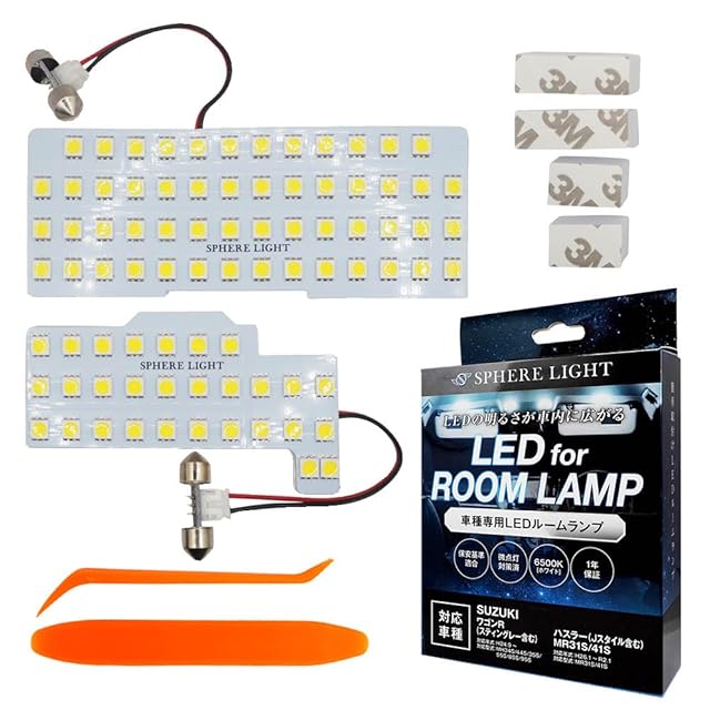 商品名:スフィアライト スズキ ワゴンR スティングレー ハスラー Jスタイル LED ルームランプ セット ホワイト MR31S MR41S 専用設計 室内灯 取付 簡単 微点灯 点滅 対策 SPHERELIGHT SLRM-39