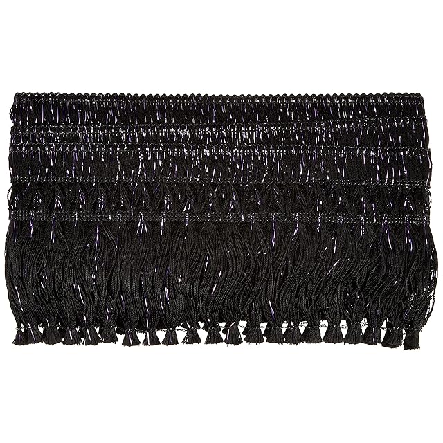 商品名:キララフレンジ(ラメ入り) 長さ:220cm ブラック ラメ:パープル MKF-BKPL