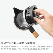 【素材】本体、フタ:18-8ステンレス鋼、ポリプロピレン、ハンドル:ビーチウッド、シリコーンゴム、ステンレス鋼、フタ:ポリアセタール、シリコーンゴム、ステンレス鋼