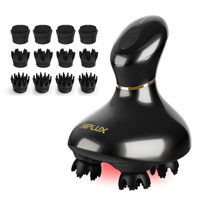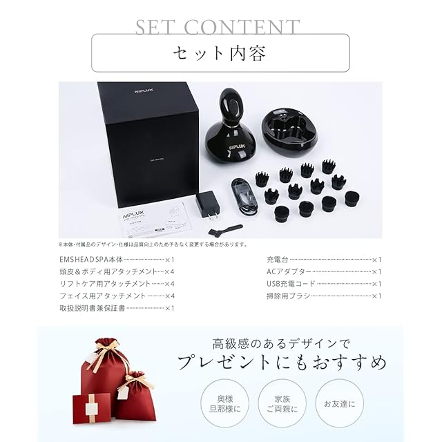 【博士監修】NIPLUX EMS HEAD SPA 電動頭皮ブラシ ヘッドスパ 株式会社日創プラス IPX7防水 3D振動 赤色LED 乾湿両用 10分タイマー コードレス 美容家電 プレゼント 女性男性用 フェイス用替えヘッド付 ブラック
