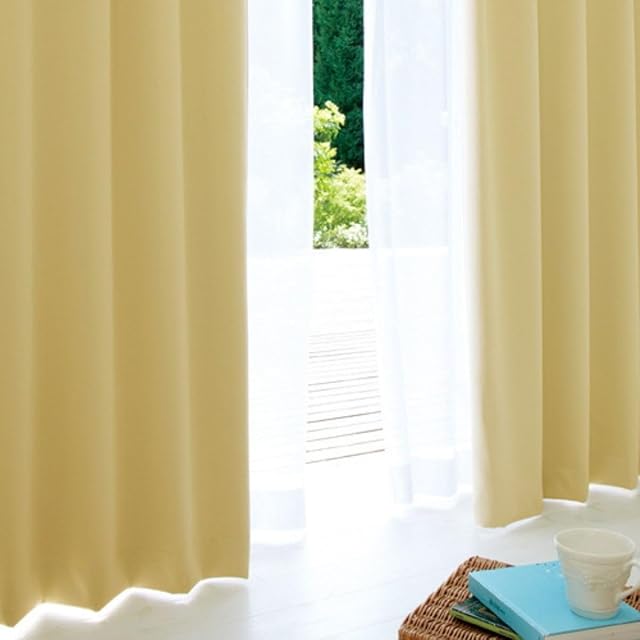 商品名:シーフィールド 《日本製》防炎 1級遮光カーテン 2枚組 幅150×220cm丈 イエロー 洗濯可 断熱 防音 NE-01