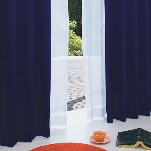 シーフィールド 《日本製》防炎 1級遮光カーテン 幅100×丈205cm : 2枚組 ネイビー 99.99%以上遮光 断熱 防寒 防音 省エネ 厚手 無地 おしゃれ 洗える 寝室 リビング用 NE-01 | emishop315