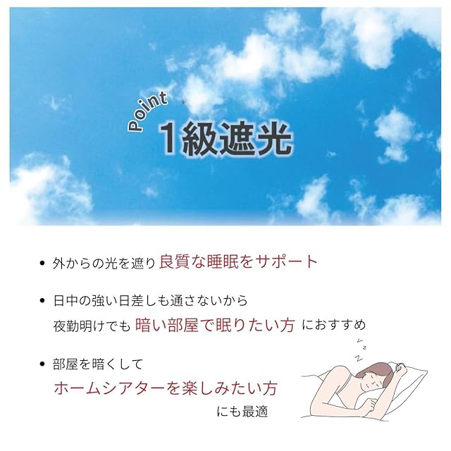 ご使用のモニターによっては、商品画像等の画面表示上の色合いと、実際の商品の色が異なる場合があります。ご了承ください。アジャスターフック付き タッセル2本付き ※1級遮光(遮光率99.99%以上)の生地を使用していますが完全遮光(遮光率100%)ではなく色の濃淡により遮光性が異なります ※150・200幅のみジョイント(つなぎ目)が入ります