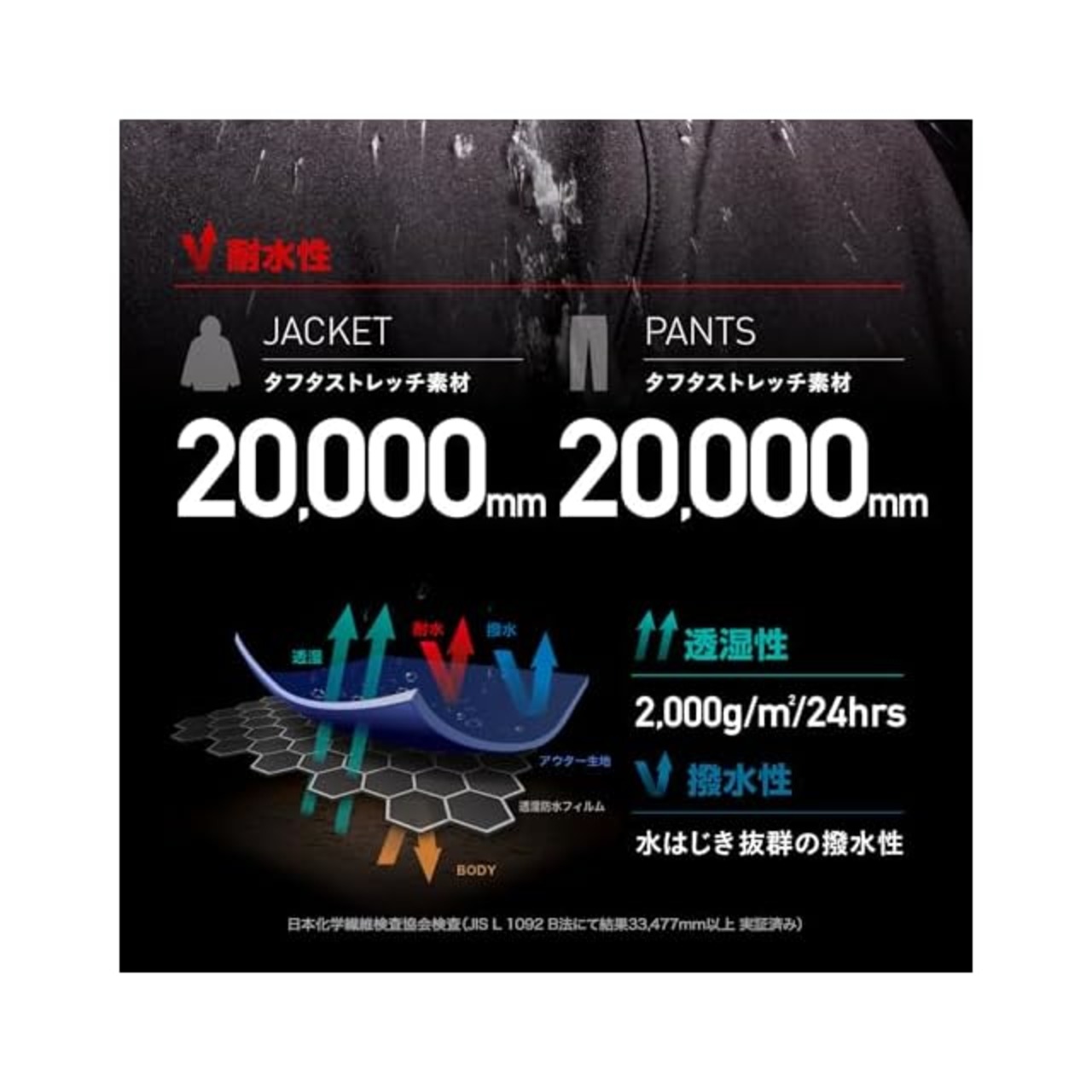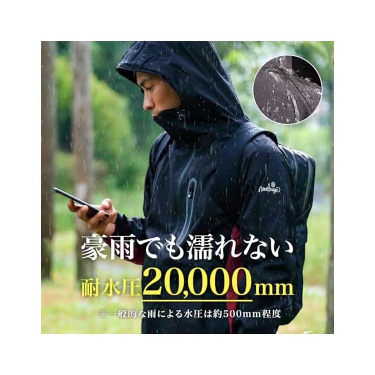 豪雨にも負けない驚きの耐水圧はなんと20,000mm!