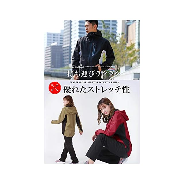 レインウェアには珍しい優れたストレッチ性でどんな動きも妨げない!アウトドア、BBQ、登山、釣り、自転車ウェアにも最適。