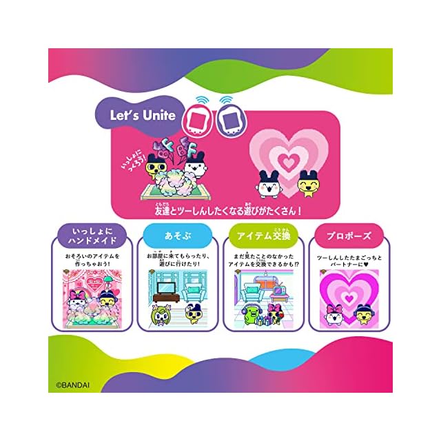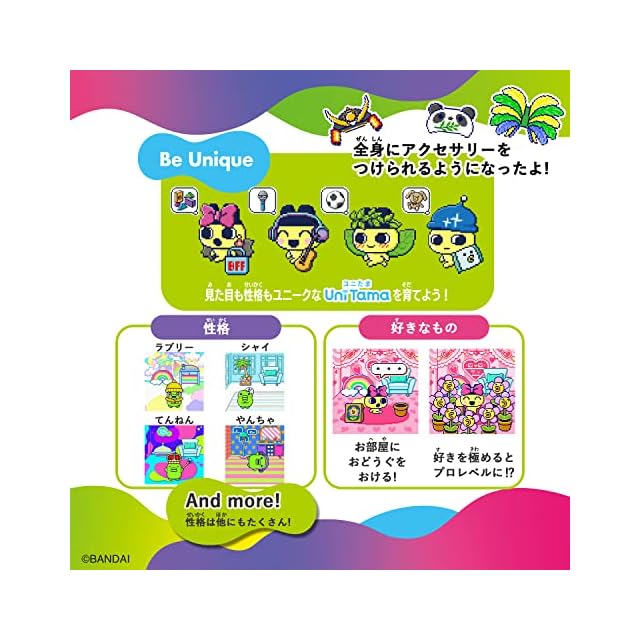 見た目も性格も個性的な、あなただけのたまごっち“Uni Tama”を 友達と”ツーしん”することでどんどんユニークに育てることができます。