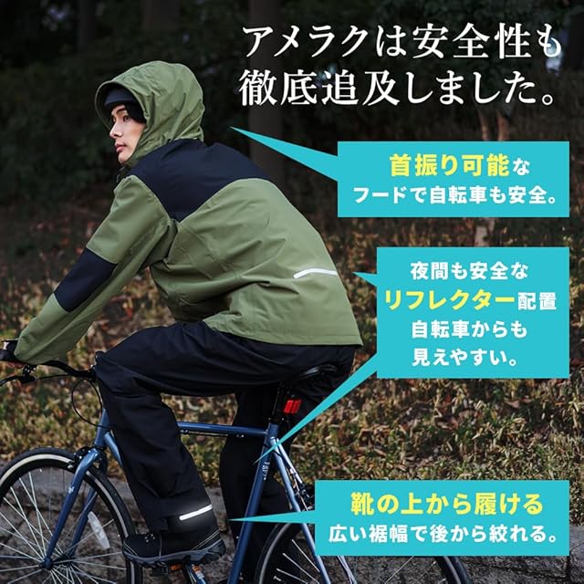 NNOUM(ノアム) レインウェア 上下セット プロも納得のレインスーツ メンズ レディース 自転車 レインコート ゴルフ 登山 透湿 防水 ストレッチ レインパンツ・ジャケット カッパ 雨合羽 雨具 AMERAKU アメラク NN25NSRA06M | emishop315