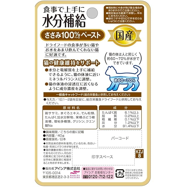 商品名:健康缶 国産パウチ 水分補給ささみペースト 640g(40g×16個入)【メール便】