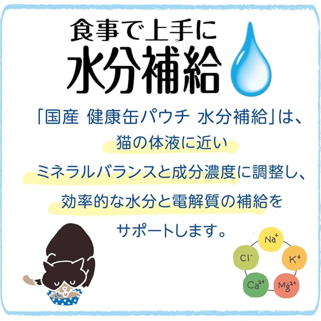 水分と電解質を上手に補給できるように、猫の体液に近いミネラルバランスに調整