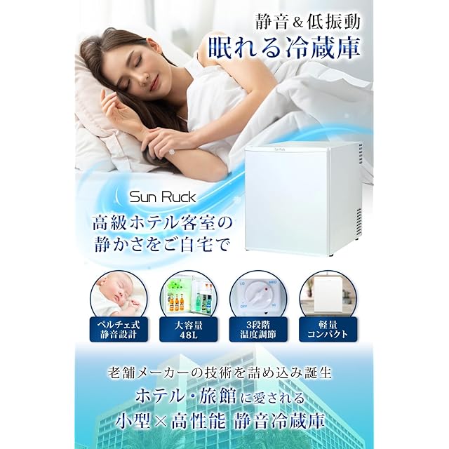 商品名:SunRuck 冷蔵庫 小型 静冷 48L ナチュラルウッド ペルチェ方式 静音 コンパクト 家庭用 SR-R4805NWD
