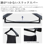 【商品特徴】ポリスチレン素材を使用した、スタンダードなハンガーです。 スーツ・ジャケット等型崩れすることなくスッキリおさまるように設計しました。スラックス止めが付いている物はたくさんあると思いますが、スラックスをきつくプレスすることなく、落ちることなく、程よくパッチンしてくれます。厚みもほどよく、しっかりあり、型くずれしません。
