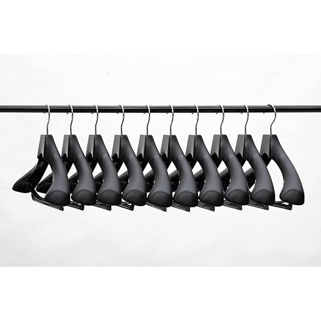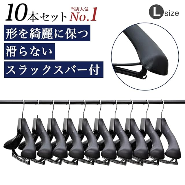 肩ラインの形状、スラックスバーにこだわり抜いた、大手アパレルメーカー様、老舗テーラー様に長年ご愛用頂いているオリジナルハンガーを10本セットでお届けします。スーツだけでなく、ワンピース コート ジャケット ニット製品 制服等の形をきれいに保ちます。