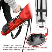 本コースだけではなく、練習場やショートコースにも最適です!専用フード付きでクラブもしっかり保護してくれます。★クラブをカートに取りに戻る必要がなくなります★クラブ置き忘れを防止します★グリップの汚れ、濡れを軽減★少しくらいの斜面にもスタンドを立てる事が可能