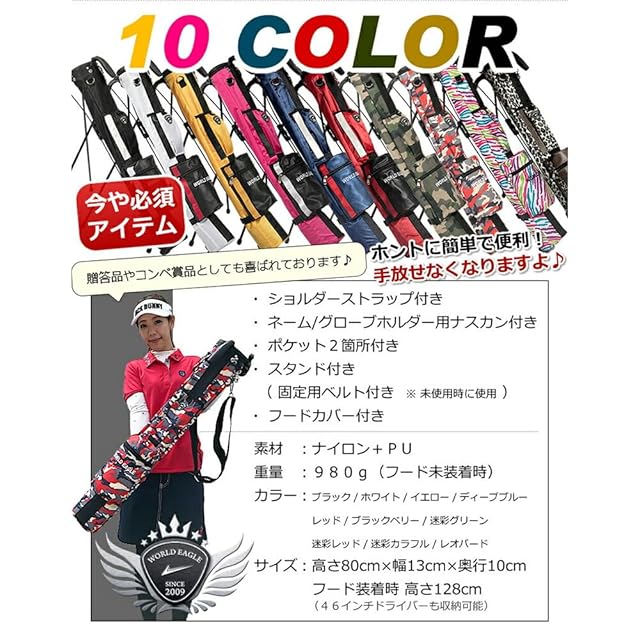 商品名:セルフスタンドクラブケース 超軽量 980g 全17色 大容量 フード・ポケット付 初心者 WE-SSCC01-7 迷彩グリーン WORLD EAGLE