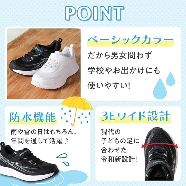 商品名:[シュンソク] スニーカー キッズ 男の子 女の子 子供靴 防水 幅広 19~26cm 3E SJJ 1520 8920 ブラックマルチ_新カラー 19.5 cm