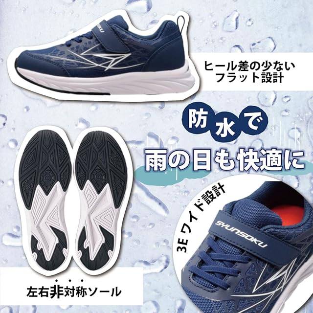 [シュンソク] スニーカー 運動靴 防水 幅広 19~25cm 3E キッズ 男の子 女の子 SJJ 8920