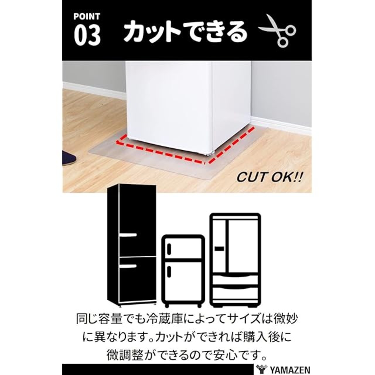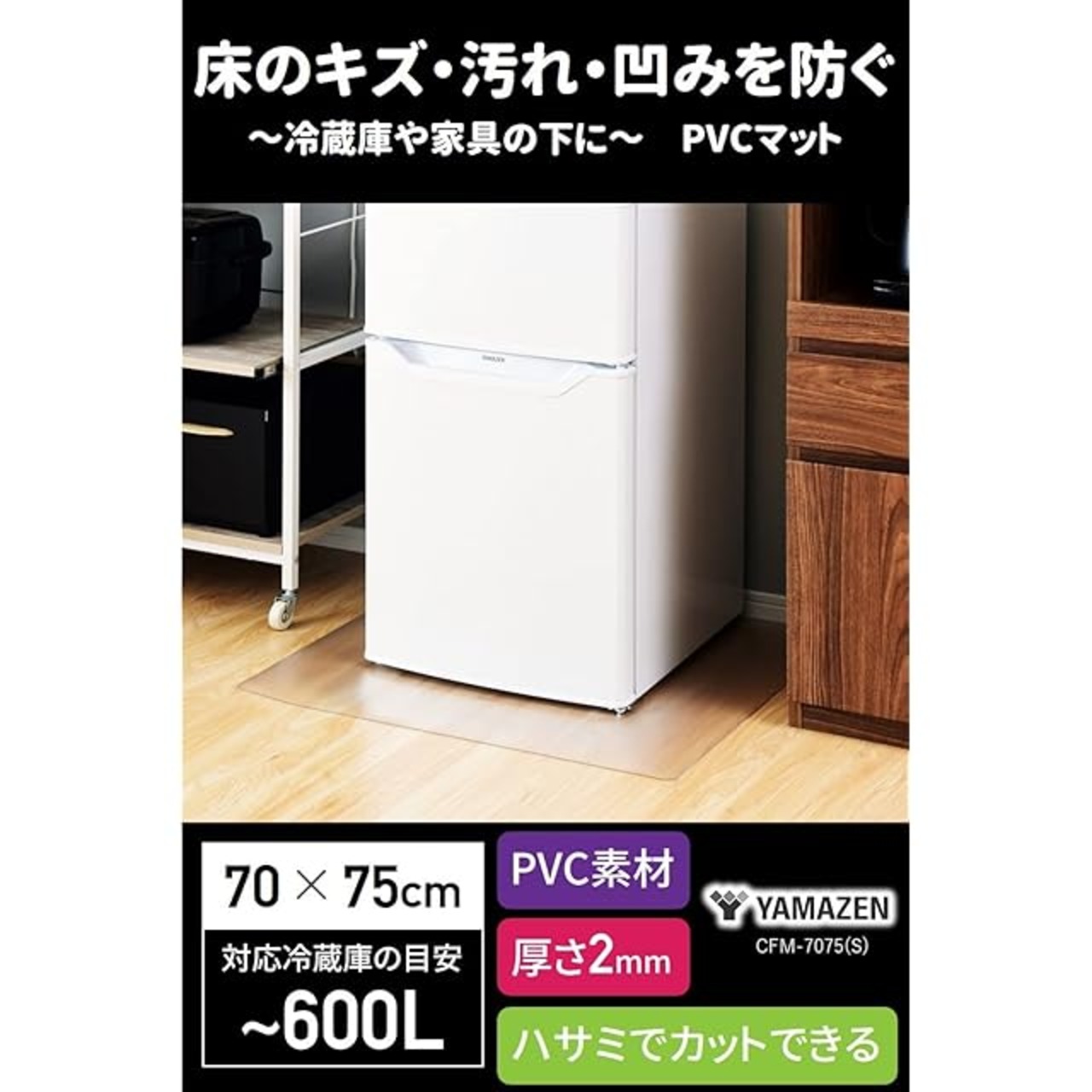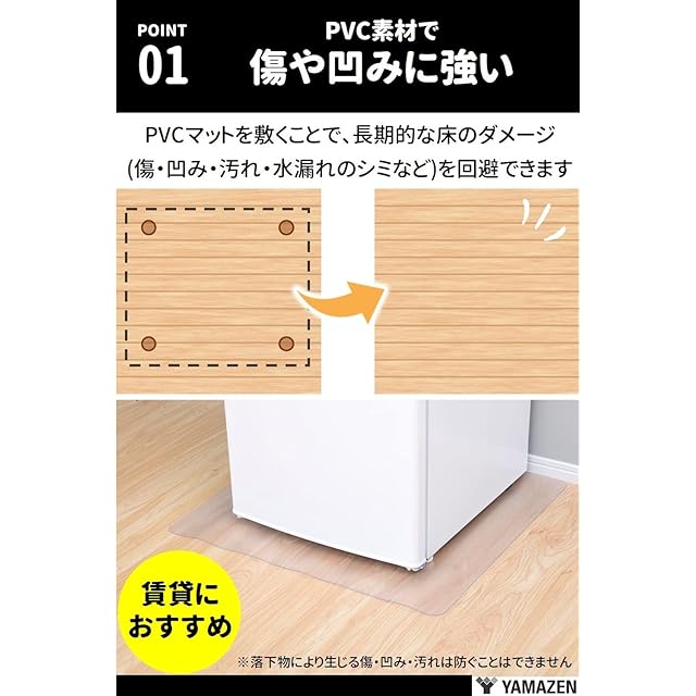商品名:山善(YAMAZEN) 冷蔵庫マット 傷防止マット 幅70×奥行75cm 厚さ1.5mm PVC 耐熱 防水 軽量 凹み防止 CFM-7075(S) 賃貸