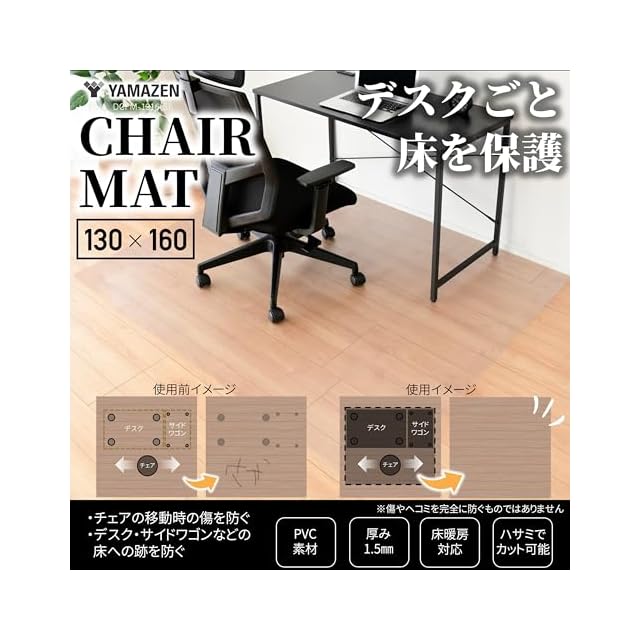 商品名:山善(YAMAZEN) チェアマット (デスク&チェアマット) 幅130×奥行160cm キズや汚れに強い 床保護 ゲーミング クリア DCFM-1316(S) テレワーク