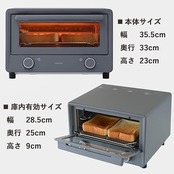 【商品仕様】◇本体サイズ:幅35.5×奥行33×高さ23cm ◇庫内サイズ:幅28.5×奥行25×高さ9cm ◇本体重量:3.8kg ◇電源:AC100V(50/60Hz) ◇消費電力:1300W ◇タイマー:電源スイッチ兼用30分タイマー ◇温度調節:80~250度 ◇電源コードの長さ:1.0m ◇期間:お買い上げ日より1年間(の範囲については、取扱説明書をご確認ください。(一般家庭用以外(業務用など)に使用された場合の故障及び損傷などは対象外となります))