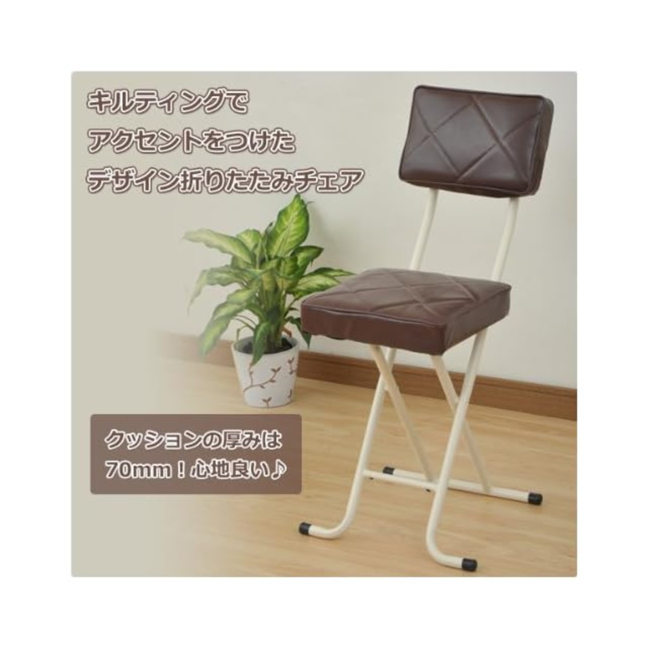 商品名:山善(YAMAZEN) 折りたたみ椅子 パイプ椅子 幅 38.5×奥行52.5×高さ82cm スリム 厚めクッション/丸型 完成品 ブラウン YZX-56(BR)